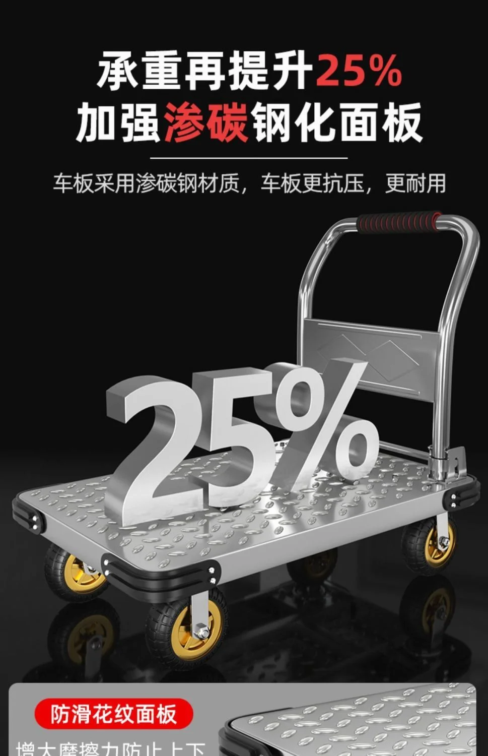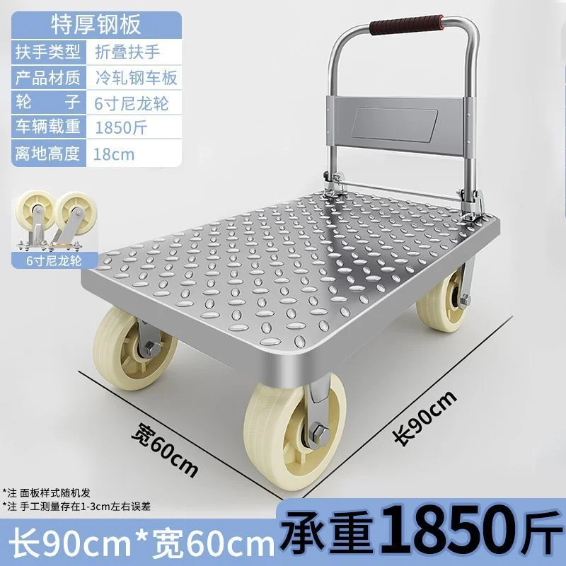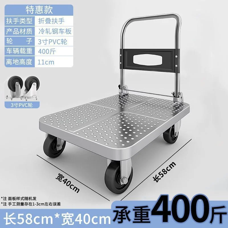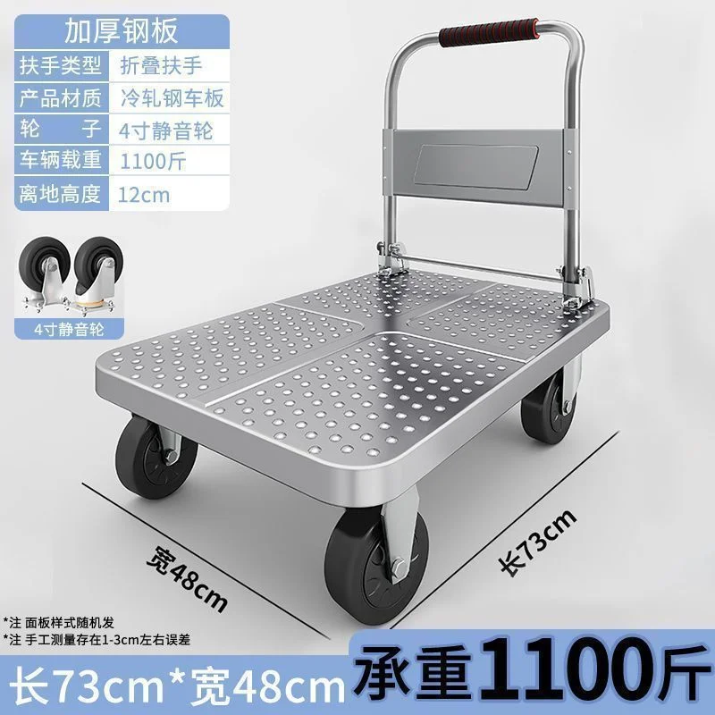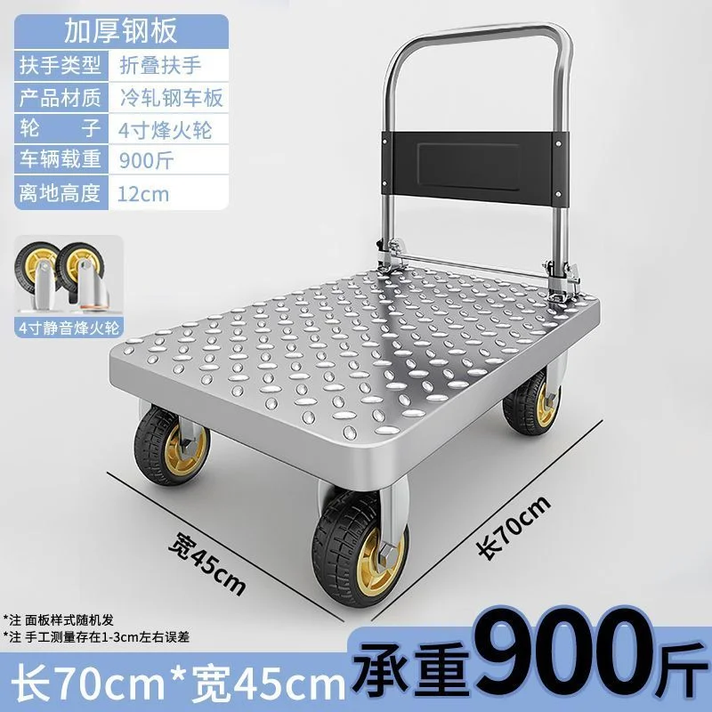 Product Name: Steel plate trolley: Handcart for hauling goods, small cart for handling, driver for hauling, trailer for hauling goods, small cart for hauling goods, foldable cart, steel plate cart for towing